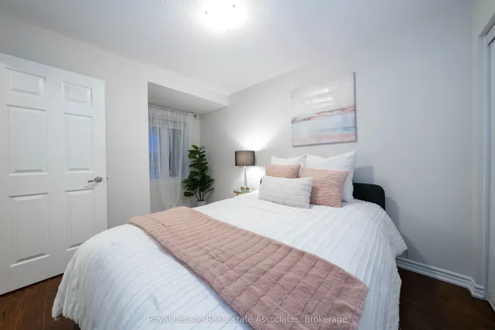 +"PublicRemarks": "CARPET FREE TOWNHOME ON A QUIET CUL-DE-SAC WITH NO SIDEWALK & NO REAR NEIGHBOURS... Welcome home to this beautifully maintained freehold townhouse tucked away on a quiet cul-de-sac with no sidewalk and no rear neighbours-offering rare privacy and added parking convenience. The bright, open-concept main floor features a spacious living room with large windows, a cozy electric fireplace, and a walkout to a private backyard with a large deck-perfect for BBQs, entertaining, or unwinding with no rear neighbours.The eat-in kitchen is equipped with stainless steel appliances, while the primary bedroom offers a walk-in closet and a private ensuite with a modern glass shower enclosure. Thoughtful upgrades include fresh paint throughout, refreshed deck (2025), powder room upgrade (2024), pot lights (2021), fridge (2024), stove (2024), dishwasher (2024), upper-floor laminate (2021), and main-floor zebra blinds (2025).The unfinished basement provides a blank canvas for your custom finishes-ideal for future living space, a home gym, or additional bedroom and includes a bathroom rough-in. Conveniently located minutes to the GO Station, parks, schools, and shopping, this home is situated in one of Milton's most desirable neighbourhoods..."