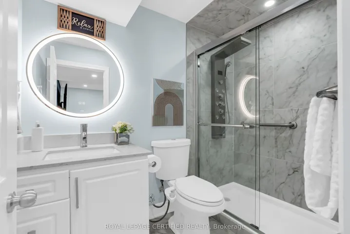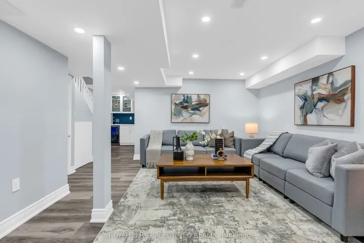 +"PublicRemarks": "Experience the pinnacle of luxury living in the prestigious Millcroft Community of Burlington with this exquisite freehold townhome. Perfectly nestled near the Millcroft Golf Club and Millcroft Park, this home offers unmatched convenience and accessibility for modern living, being close to top-rated schools, shopping centers, including Millcroft Shopping Centre, and major transportation routes like 407 ETR and QEW. The property features ample visitor parking in front, ensuring easy access for guests, and spans approximately 2,325 sq. ft. of beautifully designed living space. It includes three bedrooms, three and a half bathrooms, with a primary suite featuring a spa-like ensuite and spacious walk-in closet, along with premium flooring throughout. An open-concept main level impresses with integrated speakers, pot lights, and a cozy gas fireplace, while the renovated kitchen dazzles with quartz countertops and a breakfast bar. A convenient rear passageway is perfect for transporting lawn equipment, bicycles, or garden supplies. Step outside to a stunning outdoor deck with a natural gas hookup, ideal for entertaining. Modern home upgrades include an electric car charging point in the garage, a 2021 A/C, a 2023 tankless water heater, and new kitchen appliances in 2024. The finished basement expands your living options, offering an entertainment room, dry bar, and a versatile office/guest room with a 3-piece bath. Fully equipped with a GAS furnace, Google Nest Thermostat, and LAN connectivity, this freshly painted home is move-in ready, epitomizing turnkey luxury. The POTL covers landscaping, snow removal, garbage disposal, electricity, water, and sprinklers for the common area, ensuring hassle-free living. Dont miss this rare opportunity to secure your place in Burlingtons coveted Millcroft Community!"