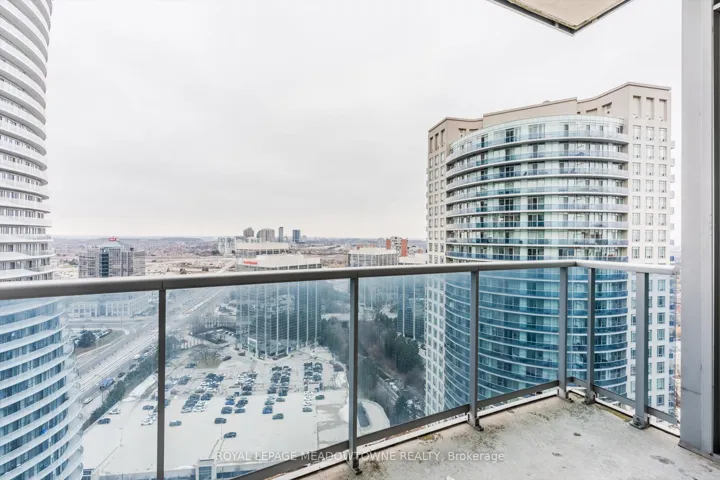 +"PublicRemarks": "Stunning corner suite in the heart of Mississauga City Centre offering 1,260 sq ft plus an 86 sq ft open balcony (total 1,346 sq ft). Bright and spacious layout with 10-ft ceilings and unobstructed views. Upgraded throughout with high-end stainless steel appliances, granite countertops, 2 generous bedrooms plus a versatile den with walkout to the terrace. Primary bedroom features a 5-piece ensuite and walk-in closet. Includes 1 parking and 1 locker, with all utilities included. Enjoy resort-style amenities at the Absolute Club House including indoor & outdoor pools, hot tub, sauna, fitness & weight rooms, basketball, squash courts, running track and guest suites. Steps to Square One, transit, community centre, schools, library, grocery, theatres, walking trails, banks, and restaurants. 24 hour concierge."