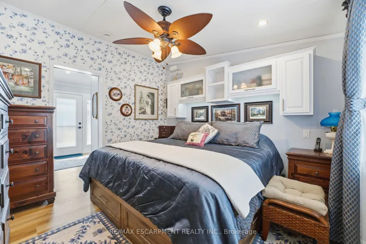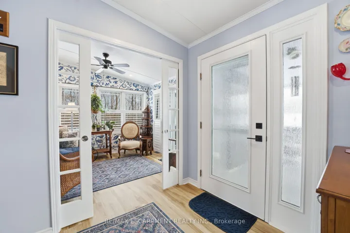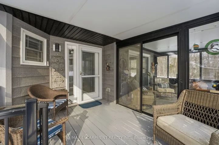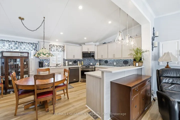 +"PublicRemarks": "Definitely one of THE BEST Locations in Lost Forest Park, set on a prime corner lot backing onto forested conservation. This General Coach custom model boasts an open layout with thoughtful upgrades throughout. The spacious eat-in kitchen features neutral cabinetry, pull-out drawers, a pantry, black stainless steel appliances, Corian countertops, pendant lights, and under-cabinet lighting. The large living room showcases a stunning floor-to-ceiling stone Napoleon electric fireplace. The primary bedroom includes a walk-in closet and a 4-piece ensuite, while the home also features a second bedroom, an additional 3-piece bath, and a roomy laundry area with full-size washer and dryer. Pocket French door entry to the bright den/sunroom with large windows to unwind and enjoy the forest view. The sunroom also features access to the professionally enclosed porch for 3-season enjoyment. California shutters, vaulted ceilings, pot lights, and ceiling fans add charm throughout. A Generac generator ensures peace of mind, and the professionally landscaped lot shines with a flagstone patio, low-maintenance artificial grass, mature trees, beautiful gardens, storage shed and a custom built raised garden bed. Enjoy entertaining in your private backyard and the tranquility of nature. Parking for two cars on the oversized double driveway! Lost Forest Park is a gated 100-acre community with amenities like a pool and walking trails, and a monthly fee of approximately $782 covers the land lease, maintenance, and more. Conveniently located in north Burlington and a short distance to Waterdown's shops and restaurants, this rare find is truly one-of-a-kind."