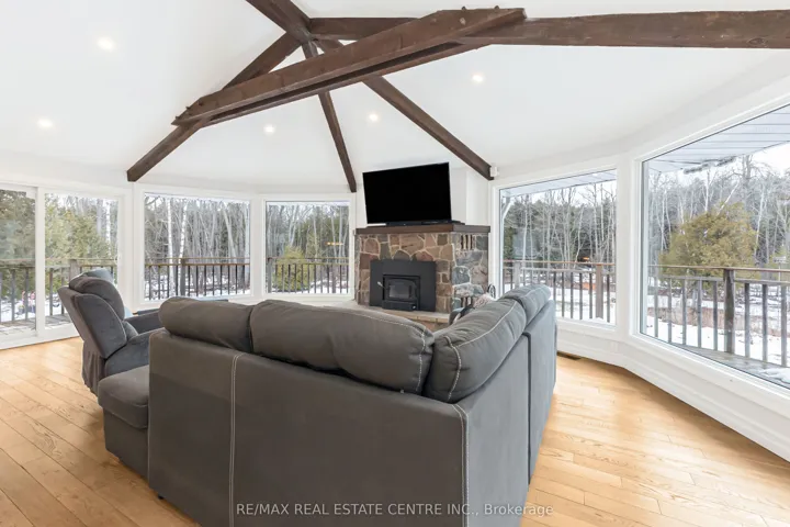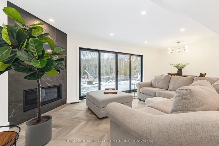 +"PublicRemarks": "An exceptional opportunity to own luxury acreage offering multi-generational living and a spa-like lifestyle surrounded by nature - gently priced for outstanding value. Set on approximately 5 acres, this beautifully upgraded raised bungalow offers two self-contained living spaces with separate private entrances, interior access, and separate septic systems. Ideal for extended family living or flexible use. The walk-out basement provides excellent natural light and functionality. Features include a chef-inspired kitchen with premium appliances, high-end finishes, and spacious living areas opening to a wraparound balcony with stunning views of mature trees, a flowing stream, and a natural pond. Enjoy resort-style outdoor living with a heated saltwater pool, landscaped grounds, and a fully serviced cabin with hydro and internet - ideal for guests, studio, or workspace. A separate 4-car garage with upper loft offers future potential to finish for office, gym, or hobby use (buyer to verify permitted use).Energy-efficient property with high-efficiency heating systems for both living areas, plus separate heat pumps for the pool and cabin, helping reduce operating costs. A rare opportunity combining privacy, lifestyle, and value. Just 10 minutes to the 401, 7 minutes to highway 6, and 35 minutes to Pearson Airport."