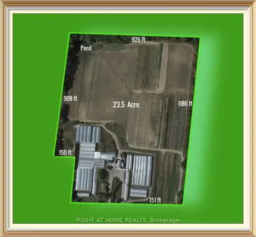 +"PublicRemarks": "Exceptional 23.5-acre turnkey greenhouse and agricultural property minutes from the GTA. Strategically located on Business Highway 7 with 751 ft of high-visibility frontage, this rare agricultural asset offers fertile sandy loam soil, two acres of maintained greenhouses, spacious barns, a loading dock and farm equipment - ready for immediate operation or expansion. A charming 4-bedroom home, deep pond and natural gas servicing complete this versatile package. With robust infrastructure in place, the property is ideal for specialty crops, greenhouse production, orchard cultivation or value-added agricultural enterprises. With proximity to major highways and urban growth corridors, this land offers strong future appreciation potential. Seller support available to facilitate a seamless transition for new operators. Don't miss this rare investment opportunity in one of Ontario's fastest-growing regions !"