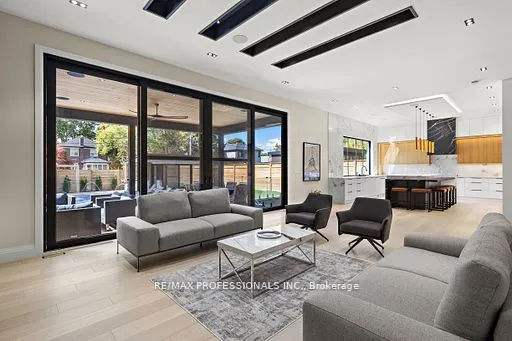+"PublicRemarks": "Step inside this breathtaking 5000+ sqft residence, where every detail embodies sophistication and comfort. The grand foyer welcomes you with soaring ceilings, leading to expansive living areas featuring custom millwork & designer notes from hardwood floors to ceilings. Experience culinary excellence in the gourmet kitchen, beautifully appointed with modern cabinetry, Italian porcelain countertops & premium Miele appliances. The adjacent full prep kitchen with a secondary range hood, cooktop & dishwasher ensures that your main kitchen remains flawless for your guests while you cook up a storm. Retreat to 1 of 2 private primary suites, complete with a spa-inspired ensuite, deep soaking tub, and bespoke walk-in closets. Entertain effortlessly in the lower level complete with home theatre built-in speakers, custom wine/cigar fridges, walk out to lower courtyard all finished in impeccable style. Glass walls open to a backyard with resort quality amenities featuring a generous size pool, landscape lighting, outdoor hot water shower, stone & granite bar & a glass enclosed cabana, offering the perfect blend of serenity and grandeur. From smart home automation to the private study to a seamless transit of indoor & outdoor space, every corner of this residence is curated for refined living. To explore the rest of this unparalleled lifestyle you simply need to call your agent and book an appointment."