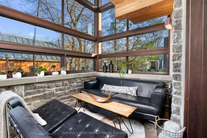 +"PublicRemarks": "Set within Oakville's West Harbour, 55 Chisholm Street is defined by originality and intent. Located steps from Tannery Park and Lake Ontario, this home was conceived as a work of art for those who value architecture, sustainability, and livability in equal measure. Inside, innovation drives the home as much as artistry geothermal heating and cooling, energy-recovery ventilation, and rainwater harvesting provide modern sustainability without sacrificing comfort. Natural plaster walls, custom ironwork, and a sculptural three-dimensional stairwell create moments of discovery at every turn. A dramatic soapstone fireplace anchors the main level, where open living and dining spaces frame views of the landscaped grounds and flow around a Scavolini kitchen with Miele appliances. The second floor offers three bedrooms and two bathrooms, including a primary suite that opens to a private terrace overlooking the property. Above, a treetop lookout provides a quiet, elevated perspective above the neighbourhood canopy, marking an unexpected and compelling architectural moment. The lower level thoughtfully integrates the home's original stone foundation with contemporary function, housing a den, guest suite, full bath, gym, laundry, and a cedar-lined wine cellar. Outdoors, nine distinct gathering spaces await, designed for both relaxation and entertaining. A cedar sauna and outdoor shower invite quiet unwinding, while a fire pit and full outdoor kitchen create an effortless setting, surrounded by lush landscaping. With access to the lake, trails, and the shops and restaurants of Downtown Oakville 55 Chisholm Street offers a rare balance of privacy and connection. This is a home for those who value craftsmanship over convention, restraint over excess, and design that reveals itself slowly. Every material, surface, and hidden detail reflects a life lived with intention. Singular in vision and execution, it stands apart for the few who recognize extraordinary design when they see it."