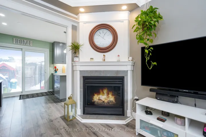 +"PublicRemarks": "Affordable living awaits in this beautifully updated three-bedroom, two-bathroom townhouse that's been finished to perfection and truly move-in ready. The main level showcases stylish laminate flooring and tasteful finishes throughout. The modern kitchen features sleek cabinetry, quartz countertops, glass tile backsplash and an island with seating and storage, plus a walkout to a private, fenced yard with gazebo - perfect for relaxing or entertaining. The sun-filled living room offers a warm and welcoming atmosphere with a corner gas fireplace accented by an attractive wood mantel, an eye-catching built-in corner cabinet, crown molding, and pot lighting. Open to the kitchen, this space creates a seamless setting for family life and entertaining. Upstairs, you'll find three generous bedrooms, including a primary bedroom with his-and-hers closets and semi-ensuite access to a four-piece bathroom. A finished basement adds valuable living space with a spacious rec room featuring an electric fireplace, pot lighting and a built-in bar/serving area, along with a four-piece bathroom and laundry/utility/storage area. Ideally located just steps to the mall and close to schools, parks, restaurants, arena, GO Transit and more, with easy access to main roads for commuters."