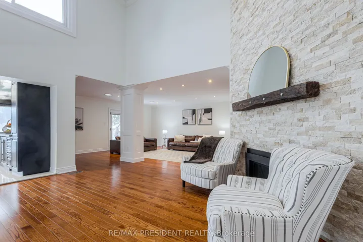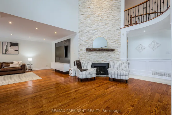 +"PublicRemarks": "Luxury, privacy, and entertainer's paradise at 42 Mount Forest. This 3,600 sq ft all-brick home sits on a rare 65' x 130' lot backing onto a serene greenbelt and trails. Featuring a 3-car garage and professionally landscaped grounds, the backyard boasts an underground pool, interlocking stone, and a dramatic stone waterfall. Step inside to a grand foyer with designer chandeliers and custom wainscoting. Sunken living and dining rooms are perfect for hosting, while the gourmet kitchen features high-end Sub-Zero and Dacor appliances, a 10' quartz island, marble backsplash, and overlooks a sitting area with a two-storey stone gas fireplace. Family room with custom TV wall unit and deck access. Two-level glass solarium with private greenbelt views, custom espresso bar, and cast-iron staircase. Second floor hosts four spacious bedrooms. The primary suite features a 4-piece ensuite, enormous walk-in closet, and custom wall unit. The second full bathroom is fully renovated, spa-like, with a custom curbless shower. No carpet throughout. Walkout basement includes a hot tub, sauna, custom home theatre ($250K invested), and two full-size bathrooms. Backyard oasis perfect for entertaining with pool and waterfall. A rare luxury home designed for comfort, style, and unforgettable gatherings."