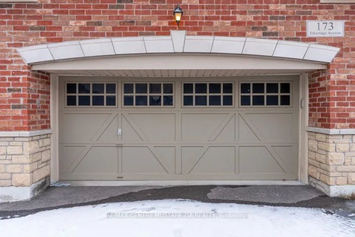 +"PublicRemarks": "Welcome to 173 Etheridge Avenue, a refined brick-and-stone townhome offering exceptional space, comfort, and versatility in a desirable Milton community. A stately double-door entrance welcomes you home, complemented by ample visitor/street parking directly outside or added convenience.Inside, a bright foyer with 9-foot ceilings leads to an open-concept main floor where the living and dining areas are accented by elegant wainscoting and flow seamlessly into a spacious family room with a cozy gas fireplace. The kitchen is thoughtfully designed with quartz countertops, a stylish backsplash, an undermount sink, gas stove/oven combo with exhaust hood, and a generous breakfast area-ideal for both everyday living and entertaining. Laminate flooring enhances the living spaces, while ceramic tile finishes the kitchen, breakfast area, and powder room. A private backyard leading to the detached double-car garage completes the main level.The second floor offers three well-appointed bedrooms with laminate flooring, windows, closets, and blinds throughout. A convenient laundry room with tub and window adds everyday ease, while the primary suite features a walk-in closet and a bright ensuite with a large walk-in shower, double sinks, and a window. A well-designed main bathroom serves the additional bedrooms.The finished basement provides impressive additional living space with an open-concept recreation area, pot lighting, laminate flooring, and windows. A bedroom and full bathroom create flexibility for guests or extended family, while ample storage, two cold rooms, and existing rough-ins for a future kitchenette add long-term value."