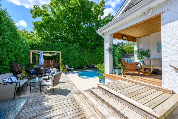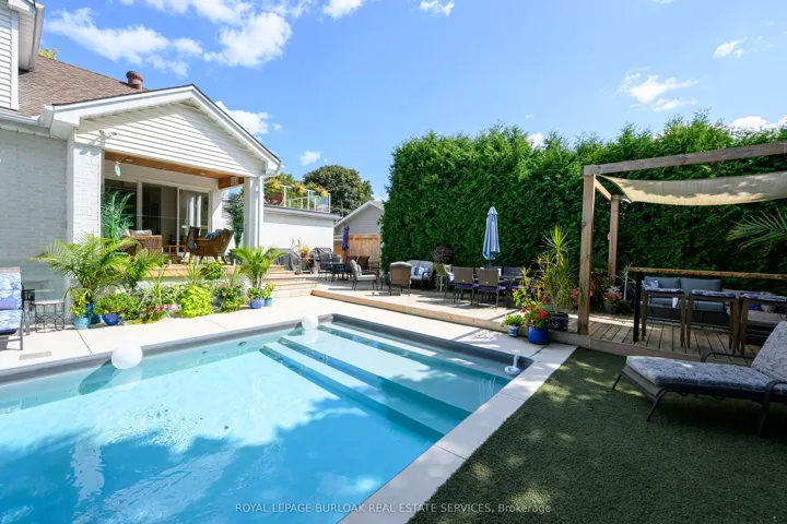 +"PublicRemarks": "Enjoy Paradise at home w/family & friends in this entertainer's backyard featuring a gorgeous heated saltwater inground pool. This beautiful 5 bedrm (2 on main flr), 3 full bathrm home w/finished basement on an 80ft wide lot, has 3500sqft of exceptional finished living space & has been renovated top to bottom in '23. The main level includes a lrg kitchen w/endless cupboard space, 10ft island w/breakfast bar, quartz CTs, SS appl., & lrg picture window overlooking the yard & pool, spacious living rm w/bay window & gas FP, dining area w/sliding doors to the covered deck w/frameless glass railing leading to the private & beautiful yard w/ a heated 14x26ft inground saltwater pool built in '21, lots of decking & seating space, mature trees, & gas bbq hookup. The main floor is completed w/2 bedrms (can also be a primary bedrm, office or den if prefer), & a 4pce bathrm w/glass panel shower. Tthe upper level includes a very lrg primary bedrm w/dble closets & private 420sqft rooftop sundeck, 2 other spacious bedrms, laundry, & a 4pce bathrm w/tub & shower. The lower level includes a lrg rec rm, spacious media rm/library, 3pce bath w/glass enclosed shower, 2nd laundry rm, workshop, storage rm, & a separate entrance. This home also has qlty wideplank hardwood floors on all 3 levels, qlty light fixtures, tonnes of pot lights, CVAC, fresh paint T/O in '24, interlocking stone dble driveway w/parking for 6, plus a dble garage, lrg front porch & sitting area, & low maintenance gardens. Located in prestigious South Aldershot on a quiet, tree-lined street, this family-friendly neighbourhood is beautiful, & close to amazing amenities including the lake, La Salle Park & Marina, other parks, qlty schools, highways, the GO, RBG, golf, rec centre, hospital, shops, dining, & more. The basement also has potential for rental income or an inlaw suite w/the separate entrance, separate laundry, full bathrm, & lots of living space. Don't hesitate & miss out! Welcome Home!"