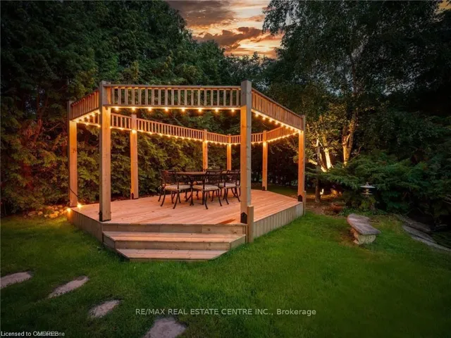 +"PublicRemarks": "Welcome to this ULTRA-PRIVATE SECRET GARDEN - A Rare Executive Country Estate Property backing onto Blue Springs Golf Club (Home of PGA Canada) w/ the most stunning yard that will rival any luxury resort. This prestigious all-brick home features open concept living + fully finished basement. It is nestled on a stunning 1.38-ACRE LOT (including a beautiful side lot for added privacy) in a quiet enclave of distinguished executive homes. There is a sense of space as you enter the grand foyer w/ its 9' ceilings and curved staircase. The heart of this home is the gourmet EI kitchen which overlooks the WO to the stunning yard and living room w/ vaulted ceiling, fireplace and additional WO to the yard. There is a main level office located off the front entrance and convenient main level laundry w/ tub. The upper floor has 3 generous bedrooms (there were 4 - can easily convert back), one being the primary bedroom w/ his/her closets and 5-pc ensuite. The basement features an over-sized 4th bedroom, RI for bathroom, a 2nd office, gym, family room and workshop. The dream yard will take your breath away and includes a pavilion for dining al fresco, heated pool, koi pond w/ waterfall, golf-themed bar, screened-in pergola, extensive hardscaping (2000+ SF of flagstone installed on 3 of concrete for stability) and professional low-maintenance landscaping - the ultimate space for entertaining. Additional features: 3-car garage, parking for 10+ in the driveway, garage entry to home, replaced exterior doors, no rentals, energy efficient gas pool heater (2018), new pool liner and cover (2025), furnace (2017), well pump (2024); water softener, UV system, HWT all owned; all windows replaced and home re-insulated, extensive UG sprinklers (including side lot), 12 x 16 double-sided pine Mennonite-built shed. Peaceful location close to golf, trails, lake, 15 minutes to 401. This is your opportunity to finally make a luxury move to the country. Thank You for showing our listing!"