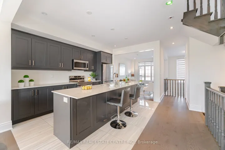 +"PublicRemarks": "Stunning 2-year-old end-unit 3-storey freehold townhouse in Bramptons Sandringham-Wellington community! Features 5 bedrooms, 4 bathrooms, open-concept living/dining with walk-out balcony, modern kitchen with stainless steel appliances & island, and a spacious primary suite with walk-in closet & ensuite. Bright, stylish, and move-in ready with easy access to parks, schools, plazas, Trinity Mall, Brampton Civic Hospital & HWY 410. A perfect blend of comfort & convenience!"