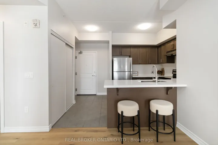 +"PublicRemarks": "Imagine coming home to this beautifully renovated two-bedroom, two-bathroom condo offering over 800 sq. ft. of bright, modern living space, plus an open balcony with tranquil views of the pond and surrounding green space-your daily dose of calm included. You'll love the freshly painted interior, new luxury vinyl plank flooring, and updated lighting, creating a clean, contemporary feel. The stylish kitchen features quartz countertops, breakfast bar open to the living area with large windows that flood the space with natural light and a walk out to the balcony. Both bathrooms have been thoughtfully refreshed with modern yet functional quartz vanity countertops, new faucets and mirrors. Two generous bedrooms provide flexibility for guests, a home office, or comfortable everyday living. Enjoy premium building amenities, including a rooftop deck perfect for relaxing or entertaining and a well equiped fitness room to support an active lifestyle.This move-in-ready condo combines modern updates, scenic views, and outstanding amenities and low condo fees too! A beautiful space to call home!"