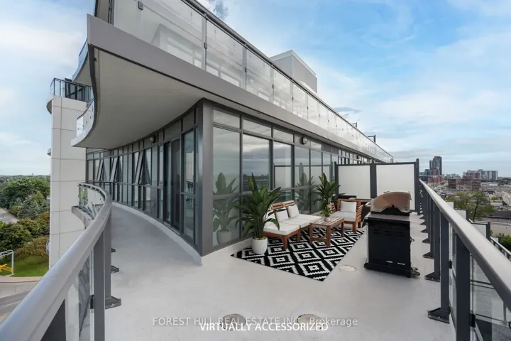 +"PublicRemarks": "Welcome to this stunning, boutique-style private condo located in the highly sought-after Yorkdale area. This spacious 863 sq. ft. unit offers a thoughtful split layout with two large bedrooms, two full bathrooms, and a large den. The unit is finished with quartz countertops, modern bathrooms, and large floor-to-ceiling windows, offering an abundance of natural light. Unique to the area, it boasts an expansive wrap-around corner terrace of over 470 sq. ft., perfect for entertaining while enjoying magnificent sunsets, BBQs permitted too! This home includes 1 extra wide parking space and 1 locker. The building provides 24/7 virtual concierge service and security cameras on every floor. Situated steps from Yorkdale Mall, Highway 401, subway access, an easy drive to the airport, coffee shops, restaurants, universities, and more. Don't miss this rare opportunity!"