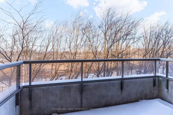 +"PublicRemarks": "STUNNING! Resort-style living in an elegant condo building with a grand foyer, large indoor pool, and concierge. This quiet, lower-floor suite is set away from the lobby and overlooks the Humber River and conservation area, offering peaceful, green views. Elevated above grade at the rear of the building, the unit includes a private balcony (not ground level). Inside, enjoy high ceilings, abundant natural light, and new wide-plank, high-quality laminate flooring throughout (except kitchen and baths). Functional split-bedroom layout with two large 4-piece bathrooms, floor-to-ceiling windows, breakfast bar, and a versatile den ideal for office or flex space. Approx. 900 sq ft. Locker located on the same floor as the unit, near elevators. A must-see nature-facing home."