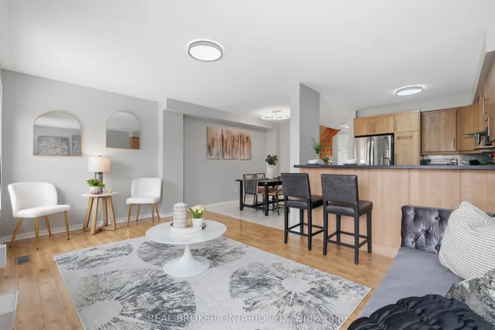 +"PublicRemarks": "Radiance on Rockgarden. Backing onto a ravine and surrounded by mature greenery, this freehold townhouse offers a rare combination of privacy, natural beauty, and contemporary design. With no rear neighbours and a walk-out lower level, the home delivers a lifestyle more commonly associated with detached living-set within a refined, low-maintenance format. The main level is thoughtfully composed for both daily living and effortless entertaining. An open-concept living and dining area is anchored by a tastefully appointed kitchen featuring granite countertops, clean-lined cabinetry, and modern finishes that balance function with understated elegance. Natural light flows throughout the space, creating a calm and welcoming atmosphere with seamless indoor-outdoor connection. The upper level hosts three well-proportioned bedrooms and two full bathrooms, including a serene primary retreat complete with a private ensuite and walk-in closet. Each space is designed with comfort, proportion, and longevity in mind, offering flexibility for families, professionals, or downsizers alike. The fully finished basement extends the home's versatility, offering a bright recreation area, a full bathroom, and direct walk-out access to a private backyard oasis. Framed by ravine views and total privacy, the outdoor setting provides a peaceful retreat for morning coffee, quiet evenings, or entertaining amid nature. Turnkey, private, and thoughtfully designed, this residence presents a compelling opportunity to enjoy modern living in a setting that feels both elevated and enduring."
