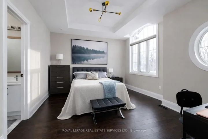 +"PublicRemarks": "Welcome to this upscale Southwest Oakville home offering an exceptional lakeside lifestyle, steps from nature & a short drive to conveniences & highways. This sought-after neighbourhood, just 2 blocks from Lake Ontario, close to waterside parks & beaches, is perfect for outdoor enthusiasts. Extensive professionally landscaped grounds, including the private, resort-style backyard, featuring a 14' x 28' heated pool with a sheer descent waterfall, LED colour-changing lighting, copper filtration, a spacious concrete patio, & composite wood seating platforms, elevate summer get-togethers. Cameras monitor the building exterior, & Smart technology allows you to control the pool functions & thermostat via an app on your phone. Inside, enjoy approximately 3,200 sq. ft. of luxury living space with 4+1 bedrooms & 5.5 bathrooms, plus the professionally finished basement, & approximately $400,000 in recent upgrades. Premium finishes include 9 & 10-foot ceilings, upgraded hardwood floors, deluxe laminate in the lower level, oversized designer tile in all bathrooms, pot lights, chic light fixtures, wainscotting, a dramatic 2-storey mirrored foyer feature wall, & the floating oak staircase with glass railings is beyond impressive. The main level offers a formal living & dining area, a family room with a coffered ceiling & gas fireplace, a private office, powder room, & laundry with garage access. The chef's eat-in kitchen features quartz countertops, deluxe white cabinetry, a butler's pantry, a centre island, premium appliances, & walkout to the dream backyard. Upstairs, you'll find 4 spacious bedrooms, each with walk-in closets & dedicated ensuite bathrooms, including the primary suite with a tray ceiling, an electric fireplace & spa-like five-piece ensuite. The finished lower level includes a large rec room with an electric fireplace & wet bar, a fifth bedroom, & a stylish 3-piece bath-ideal for entertaining, extended family, or guests."