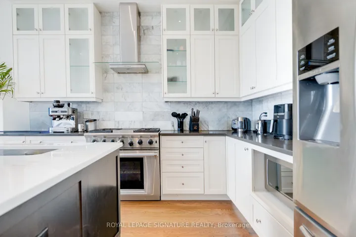 +"PublicRemarks": "Welcome To This Exceptional Two-Storey Detached Residence In The Coveted Etobicoke-Mimico Neighbourhood. Custom-Built And Impeccably Maintained, This Home Blends Architectural Detail With Thoughtful Functionality Across Every Level. The Main Floor Showcases A Bright, Expansive Living And Dining Area, Anchored By A Statement Floating-Style Open-Riser Staircase With Wood Treads And Sleek Glass Detailing, Creating A Dramatic Yet Timeless Design Moment. At The Heart Of The Home, The Gourmet Kitchen Impresses With Soaring 12-Ft Ceilings, Illuminated Cabinetry, Premium Quartz Countertops, A Large Centre Island, And Stainless Steel Appliances. The Adjacent Family Room Continues The Sense Of Scale With Matching 12-Ft Ceilings, A Fireplace, And Direct Access To The Deck And Professionally Landscaped Backyard. The Upper Level Offers Three Well-Proportioned Bedrooms With 9-Foot Tray Ceilings, Enhanced By Abundant Natural Light From Skylights And Contemporary Glass Railings. With Four Bathrooms In Total, Including Three Full Baths And A Main-Floor Powder Room, The Home Is Well Suited For Both Family Living And Entertaining. The Lower Level Features 9-Foot Ceilings And A Walk-Up To The Backyard, Offering Flexible Space For Recreation Or Extended Living. The Basement Is Also Roughed In For Radiant Floor Heating. Refined Finishes Include 9.5" Baseboards, 4.5" Poplar Backbend Casing, Hardwood, Marble, And Porcelain Flooring, Generous Storage, An Integrated Security Camera System, And A Built-In Garage. Located In One Of Toronto's Most Desirable Waterfront Communities, This Is A Rare Opportunity To Own A Truly Turn-Key Home"