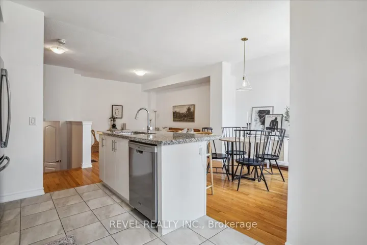 +"PublicRemarks": "Welcome home to this beautifully maintained, move-in ready and recently painted 2-bedroom townhouse, perfectly situated in one of Oakville's most amenity-rich neighbourhoods. This home offers approximately 1,490 sq ft of thoughtfully designed living space with 2+1 bathrooms and an exceptional rooftop terrace for true scenic enjoyment.The main level features an inviting open-concept layout with oak hardwood flooring, oversized windows, and walk-out access to one of three private balconies. The bright, neutral kitchen is beautifully finished with granite countertops, a breakfast bar, updated backsplash, and stainless steel appliances, seamlessly overlooking the dining and family rooms-perfect for entertaining.An elegant oak staircase leads to the upper level, where the spacious primary bedroom boasts large windows and a 4-piece ensuite. The generously sized second bedroom (nearly 9 x 13 ft) offers a light, airy feel with access to its own private balcony, along with an additional 4-piece bathroom on this level.The third floor reveals a stunning, oversized rooftop terrace-ideal for hosting friends and family or simply relaxing while taking in the scenic views. Conveniently located close to shopping, restaurants, schools, parks, and major highways (403/407 & QEW), this is urban Oakville living at its best."