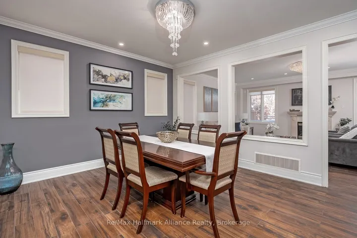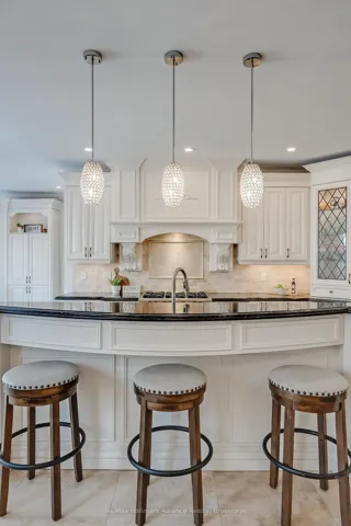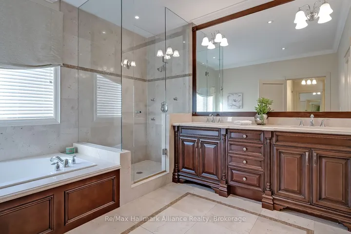 +"PublicRemarks": "Welcome to 2381 Gamble, a move-in-ready executive home located in the heart of prestigious Joshua Creek, within walking distance to Joshua Creek Public School, trails, parks, and playgrounds, and close to everyday amenities. Offering approximately 3,738 sq ft plus a finished basement, this impressive 4 bedroom, 4.5 bathroom residence features extensive high-quality renovations throughout. A covered front porch leads to a grand foyer with heated porcelain flooring, opening to an elegant main level with Italian porcelain floors, crown moulding, pot lights, and crystal light fixtures. The formal living room and private den/office both feature heated floors with separate temperature controls. The spacious dining room flows into the inviting family room with gas fireplace and included frameless TV. The gourmet kitchen is a standout, featuring travertine flooring, a large centre island with breakfast bar, granite countertops, stone backsplash, high-end stainless steel appliances, and custom cabinetry with soft-close hinges, glass display cabinets, and undermount lighting. A bright breakfast area with five large windows offers a walkout to the patio. The expansive primary suite includes his and hers walk-in closets, a luxurious 5-piece ensuite with marble floors, jacuzzi tub, double vanity, glass shower, and a separate sitting area. The second bedroom features a private 4-piece ensuite, while the third and fourth bedrooms share a 5-piece semi-ensuite. The finished basement offers a 3-piece bath with heated marble floors, custom walnut vanity, entertainment and recreation areas with gas fireplace, built-in cabinetry, speaker system, custom wet bar with wine fridge, and bonus servery. The backyard retreat features an inground saltwater pool, extended patio, professional landscaping with irrigation and lighting, custom cedar shed/pool house, and retractable awning. A rare opportunity in one of Oakville's most sought-after neighbourhoods."