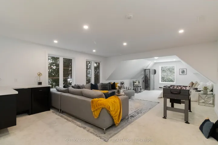 +"PublicRemarks": "Experience Unmatched Luxury in This Fully Rebuilt Two-Storey Estate Set on 1.37 Acres of Exceptional Privacy, Featuring a Private Pond and a Sanctuary-Like Setting. Perimeter Surrounded by Trees for Additional Privacy.This Stunning Home Offers 5 Bedrooms, Plus a Self-Contained 2-Bedroom In-Law Suite With a Separate Entrance, Ideal for Extended Family, Guests, or Potential Rental Income. High-End Finishes Throughout Elevate Both Everyday Living and Entertaining. A Dedicated Indoor Theatre, Connected to a Spacious Upper-Level Loft, Provides the Perfect Space for Relaxing, Entertaining, or Use as an Additional Bedroom or Flex Space.The Main Floor Showcases a Bright, Open-Concept Layout Featuring Spacious Living, Dining, and Family Rooms Anchored by a Fireplace and Highlighted by Floating Stairs With Glass Railings. A Main-Floor Bedroom With a Private Ensuite Offers the Perfect Setup for Guests or Multigenerational Living. Step Outside to a Large Patio Deck, Ideal for Summer Barbecues and Outdoor Entertaining.Upstairs, You'll Find Four Generously Sized Bedrooms, Including a Luxurious Primary Retreat With a Spa-Inspired 5-Piece Ensuite and Private Balcony Overlooking the Serene Surroundings.A Rare Blend of Modern Design, Privacy, and Versatility. This Home Is Truly One of a Kind. Majority of the home was rebuilt with new materials roughly 5 years ago. With additions to the structure. Also new addition added: ground floor in-law suite with separate entrance.(2023)Homes Theatre (2024) Car port (2025) Pond Fountain (2025) New Landscaping, wooden structure(2025)"