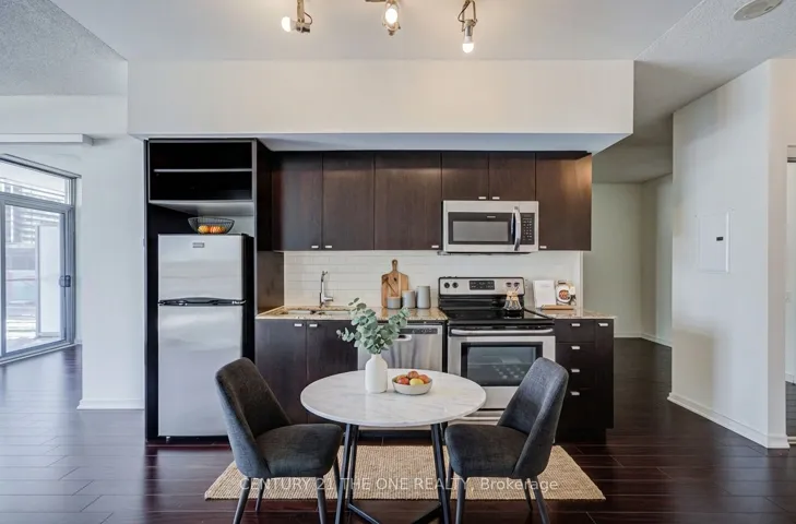 +"PublicRemarks": "This well-designed 1 bedroom plus den suite offers 706 sq.ft. of interior living space complemented by a 93 sq.ft. private balcony, delivering a functional and comfortable layout ideal for modern city living. The versatile den is perfect for a home office, study, guest room, or even an extra bedroom, offering excellent flexibility. The open-concept living and dining area is bright and inviting, seamlessly connected to a contemporary kitchen-ideal for everyday living, entertaining, or working from home. Large windows provide abundant natural light throughout, creating a warm and welcoming atmosphere. Enjoy amazing building amenities including concierge service, indoor and outdoor pools, a fully equipped exercise room, tennis court, and ample visitor parking. Ideally located close to transit, waterfront trails, parks, shopping, dining, and major highways, this home offers an exceptional blend of lifestyle, convenience, and value in a prime Toronto location."