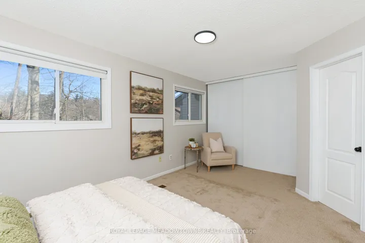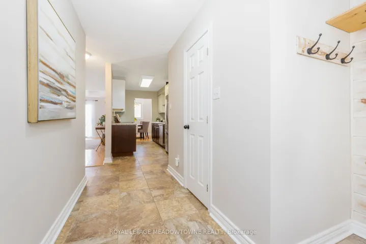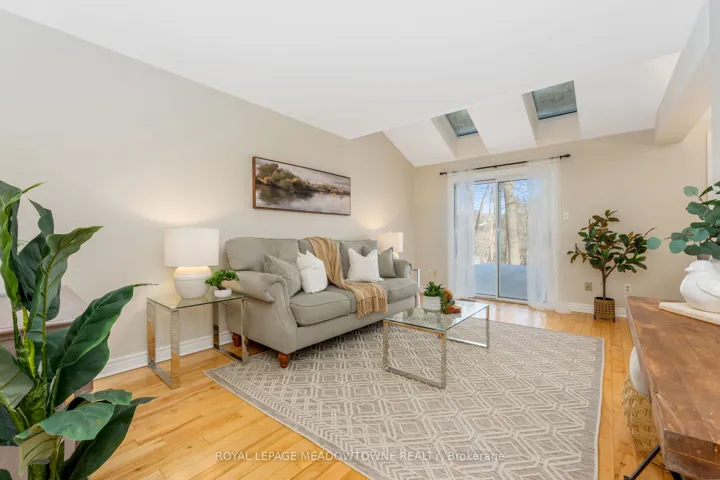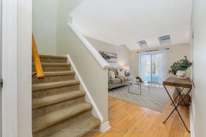 +"PublicRemarks": "Move-in Ready 3 bedroom, 2 bathroom townhouse overlooking the serenity of the Credit River. Before stepping inside, take a moment to appreciate the stone porch and the curb appeal of the etched glass insert in the front door casting light into foyer. The living room with hardwood floors opens to a large deck guaranteed to provide a happy place for meals and gatherings. The updated kitchen with a pass-thru, glass cupboards, white tile backsplash and stainless steel appliances leads to the dining area which is illuminated by skylights. Upstairs there are three freshly painted bedrooms and a semi-ensuite 4-piece bathroom adjacent to the large primary bedroom with wall-to-wall closets. The finished rec room provides additional space to relax and play."