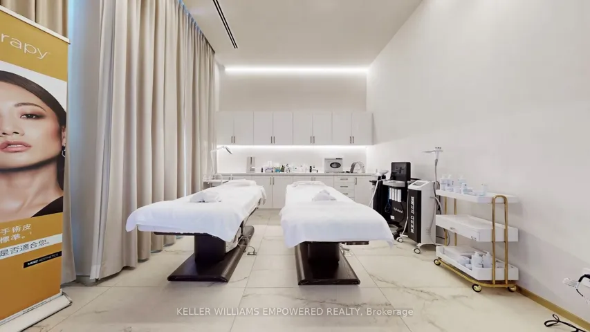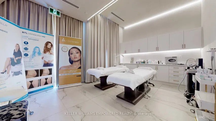 +"PublicRemarks": "Located in one of South East Oakville's most prestigious office complexes and surrounded by an affluent, highly desirable neighbourhood, this turnkey asset sale presents an exceptional opportunity to acquire a fully built-out luxury cosmetic clinic with strong visibility and high traffic exposure; the approximately 1,480sq. ft. space is intelligently designed with three spacious treatment rooms, a private consultation room featuring smart switchable glass, a luxury bathroom, and a utility room, and is finished to a premium standard including custom window coverings and curtains, LED accent backlighting, extensive built-in cabinetry, integrated speakers, a refined reception area with a stone reception desk, client seating, product display shelving, and a dedicated beverage station; the property benefits from ample free on-site parking, enhancing client convenience, and is supported by a favourable lease with approximately 1.75 years remaining plus a 5-year option to renew, at a current rent of approximately $5,700 per month inclusive of TMI and HST; ideal for an entrepreneur seeking to enter or scale within the cosmetic clinic space with significant growth potential, with treatment equipment negotiable separately, transition and onboarding support available from the owner, and the client database open for discussion and negotiation, notwithstanding the asset-only structure of the sale."