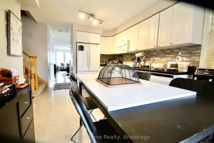 +"PublicRemarks": "Stunning End Unit townhouse featuring 4 Bedroom 4 bathrooms with approx. 1575 sq. Ft of above grade living space.Large Living room full of light and separate dining room with a Gas Fireplace, Modern Kitchen with dark quartz countertops and breakfast area, walk-out to patterned-concrete patio,Dark Hardwood Flooring throughout main level, 3 bedrooms and 2 bathrooms, on the second floor, master bedroom ensuite with walk in closet, second floor laundry room, Huge recreational area, Extra bedroom and modern bathroom in the basement. inside entry from the garage, wide driveway can accommodate 2 or 3 cars.close to schools and parks, a shopping Plaza, and major highways."