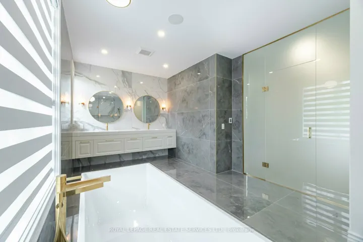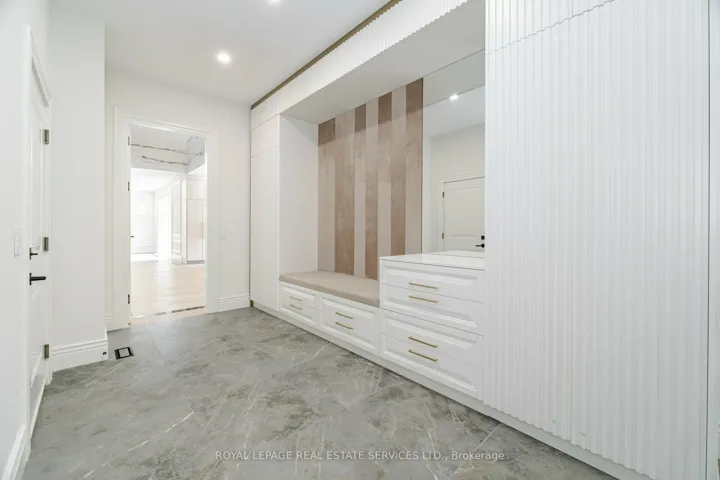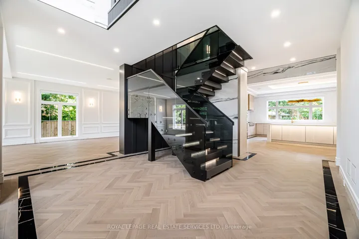 +"PublicRemarks": "Set on a commanding 112.5'x199.5' lot just steps from the lake, this custom modern-traditional estate offers nearly 11,000SF of finished living space across three levels. A long private drive with parking for up to 12 cars and oversized 3-car garage create a striking arrival, complemented by stone and stucco architecture, soffit lighting, and professionally landscaped grounds. A dramatic double-height foyer introduces the home's scale, anchored by an open-riser staircase with smoked glass panels and integrated lighting. Principal rooms feature tile inlaid borders, herringbone engineered hardwood flooring, oversized windows, and sleek architectural lighting. The chef's kitchen is centred around a 10' quartz island with premium Thermador appliances, bespoke cabinetry, and a dedicated coffee station, flowing seamlessly into the family room with a modern fireplace feature wall, built-in media cabinetry, and multiple walkouts to a covered portico designed for four-season entertaining. A private main-floor office with double French doors and its own exterior entry offers exceptional work-from-home flexibility. Upstairs, four bedroom suites include a luxurious primary retreat with dual walk-in closets and a spa-inspired ensuite featuring a steam shower, freestanding tub, wall-mounted fixtures, and heated floor. The walk-up lower level is designed for lifestyle living with radiant in-floor heating, theatre room, wet bar, glass-enclosed gym, guest suite, pet spa, and extensive storage. Outdoor living is elevated with a rectangular pool and water feature, large-format stone terraces, composite sun deck, covered outdoor fireplace wall with TV rough-in, built-in BBQ station, and pool-house. Smart home technology, multi-zone audio, dual HVAC systems, and security surveillance complete this exceptional Lakeshore Road offering near parks, trails, and Bronte amenities. An outstanding blend of architectural presence, scale, and resort-style living! (some images have virtual staging)"