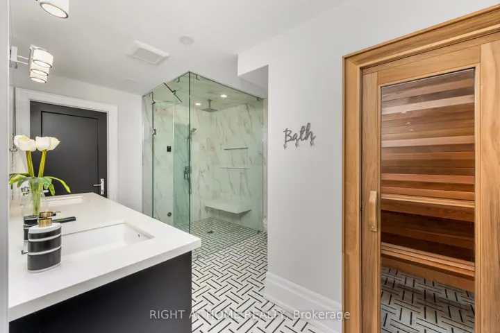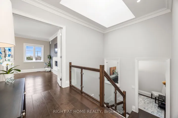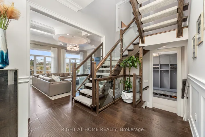 +"PublicRemarks": "Welcome to this exquisite Fernbrook-built "Rockefeller Elevation B" model in Oakville's prestigious Glenorchy community. Offering over 3,800 sq. ft. of upgraded above-grade living space on a premium ravine lot, this home delivers true turnkey luxury.The main floor, professionally finished by Parkyn Design, boasts 11-ft smooth ceilings, porcelain tile, 11 baseboards, crown moulding, custom wainscoting, and designer accent walls. A chefs custom kitchen with double-stacked cabinetry opens to a panoramic breakfast/sunroom with breathtaking ravine views. The elegant family room features a built-in gas fireplace and custom shelving.A stunning floating glass staircase with skylight leads to a private office located between the main and second floors. The spa-like primary suite includes a walk-in closet, fireplace, and a luxurious ensuite. The second bedroom offers its own ensuite, east-facing windows, and a cozy bench. The third and fourth bedrooms share a beautifully appointed Jack & Jill bathroom. A convenient second-floor laundry adds to the functionality.The finished basement adds even more living space and features a home theatre with projection screen, a second kitchen, playroom, fifth bedroom, and a luxury bath complete with heated floors, steam shower, and sauna. Three oversized storage rooms provide ample space.Hundreds of thousands of dollars have been spent on upgrades throughout this meticulously maintained home. Located just steps to top-rated schools, scenic parks, trails, and the vibrant Uptown Core."