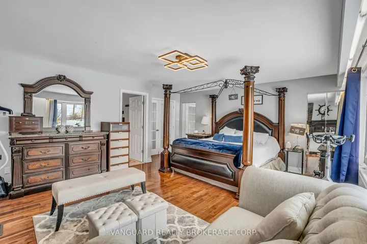 +"PublicRemarks": "A rare and highly coveted live/work residence offering exceptional scale and flexibility. This stunning, sprawling 3,500 sq. ft. bungalow features 5 spacious bedrooms and 4 well-appointed bathrooms, designed for elevated living and effortless functionality. The property boasts two separate legal driveways with direct access to the rear yard and a heated, approximately 1,000 sq. ft. workshop, ideal for discerning owners seeking space, privacy, and versatility. Just one minute from Highway 401, this unique offering combines convenience with future industrial zoning potential, presenting a remarkable opportunity in a premier location."