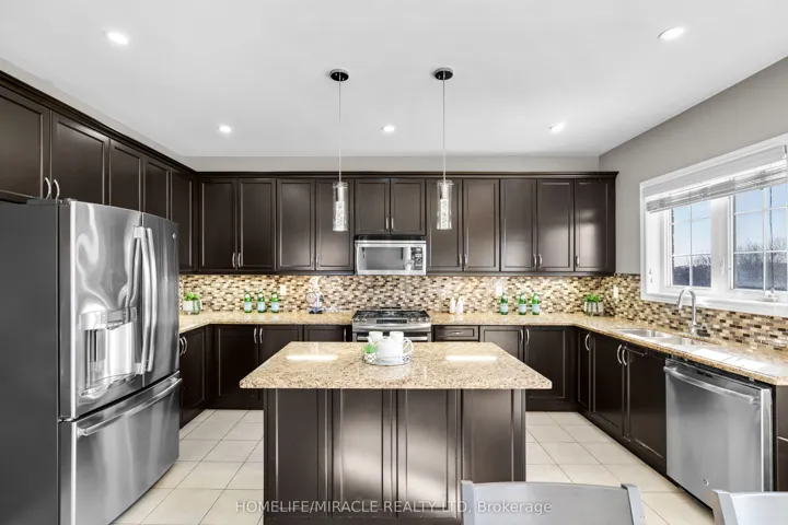 +"PublicRemarks": "**RARE PIE-SHAPED RAVINE LOT ON A QUIET CUL-DE-SAC WITH LEGAL WALK-OUT INCOME SUITE** Welcome to an exceptional family home tucked away on a quiet, child-friendly court-offering the kind of lot, layout, and long-term value that rarely comes to market. An impressive 110-ft wide backyard, this 5-bedroom, 5-washroom residence delivers space, privacy, and flexibility in one of Brampton's most sought-after pockets, right on the Vaughan border. Built in 2014 and offering approx 3,369 sq ft above grade, the home is thoughtfully designed for growing or multi-generational families, with every bedroom featuring ensuite or semi-ensuite bathroom access. A grand double-door entry opens into a welcoming foyer with smooth ceilings, crown mouldings, and rich hardwood flooring throughout the main level. Enjoy 9-ft ceilings, a gas fireplace in the family room, built-in surround sound, and a versatile main-floor den ideal for a home office or studio. The kitchen serves as the heart of the home, featuring granite countertops, extended dark espresso cabinetry, stainless steel appliances, and an open-concept layout flowing seamlessly into the breakfast and family rooms-perfect for everyday living and entertaining, all while overlooking the ravine-backed yard. Convenient second-floor laundry enhances the home's functional layout. Brand NEW legal walk-out basement apartment (never lived in) offers excellent income potential or in-law suite and includes a separate, owner-accessible area for added flexibility. Additional upgrades include 200-amp electrical service for future expansion and EV charging, plus an energy-recovery ventilation (ERV) system for year-round fresh, energy-efficient air circulation. With no sidewalk, ample parking, potential for a future garden suite, and close proximity to top-rated schools, parks, transit, shopping, Gore Meadows Community Centre, and major highways (407 & 427), this is a rare move-up opportunity that truly checks every box. Don't miss this!"