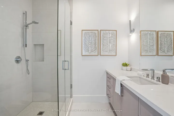 +"PublicRemarks": "Experience unparalleled luxury in the prestigious heart of Bronte West. Custom built in 2024, this exceptional residence blends modern sophistication with timeless craftsmanship, offering over 6,100 sq. ft. of impeccably finished living space, highlighted by five fireplaces, on a coveted 75' x 150' lot. The striking limestone stucco exterior, clean architectural lines, and expansive windows create impressive curb appeal while filling the home with natural light. Inside, the main level showcases soaring ceilings, custom cabinetry throughout, and warm, inviting living spaces designed for both comfort and entertaining. At the heart of the home is a world-class chef's kitchen, featuring premium Thermador appliances and an oversized center island. The upper level is designed for comfort and privacy, offering four generously sized bedrooms, each with its own ensuite and heated floors. In total, the home features seven beautifully appointed bathrooms. The fully finished lower level adds exceptional versatility with a private nanny or guest suite complete with its own ensuite, along with a spacious recreation room, wet bar, and a fully equipped gym. A seamless indoor-outdoor transition leads to a covered terrace with a fireplace, overlooking an oversized backyard - an ideal setting to create your dream outdoor oasis. Complete with a 2.5-car garage, this extraordinary home delivers luxury living within walking distance to the lake, in one of Oakville's most sought-after neighborhoods."