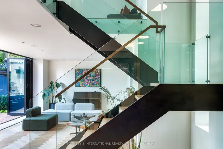 +"PublicRemarks": "This stunning 1929 Tudor home has been meticulously transformed into a modern masterpiece, seamlessly blending historic charm with contemporary luxury and cutting-edge technology. Set on a sprawling 100' x 277' ravine lot, this $6 million renovation offers an exceptional living experience in one of Toronto's most prestigious neighborhoods. The grand exterior features a restored J.W. Fiske cast iron fountain and a heated cobblestone driveway, accommodating over 10 vehicles. Inside, every detail reflects craftsmanship and sophistication. The chef's kitchen, designed by Scavolini, is equipped with Wolf and Gaggenau appliances, while radiant-heated herringbone oak floors lead to floor-to-ceiling European folding glass doors that open to stunning ravine views. The spa-like bathrooms boast heated marble floors, European wall-mounted toilets, and custom millwork. Hidden HVAC systems, motorized blinds, and recessed lighting create a sleek, minimalist aesthetic. A state-of-the-art audio system, includes over 60 Bowers & Wilkins speakers, powered by Bryston, Sonos, and NAD amps. Four outdoor zones with buried subwoofers ensure exceptional sound across the property. The lower level is designed for entertainment, featuring 10' ceilings, polished concrete floors, a full-size arcade, a professional gym, and an indoor sauna. A walkout leads to a year-round heated pool, hot tub, and an all-season patio with infrared heaters, perfect for outdoor enjoyment in any weather. The home is fully equipped with app controlled automation for lighting, blinds, HVAC, security, audio, access, pool/spa/sauna. Residents enjoy access to the exclusive Baby Point Club, offering tennis, lawn bowling, and community events. A perfect blend of historic charm and modern luxury, this home offers an unmatched living experience. The home features a durable composite cedar roof with a lifespan of up to 60 years, offering long-lasting protection and timeless aesthetic appeal."