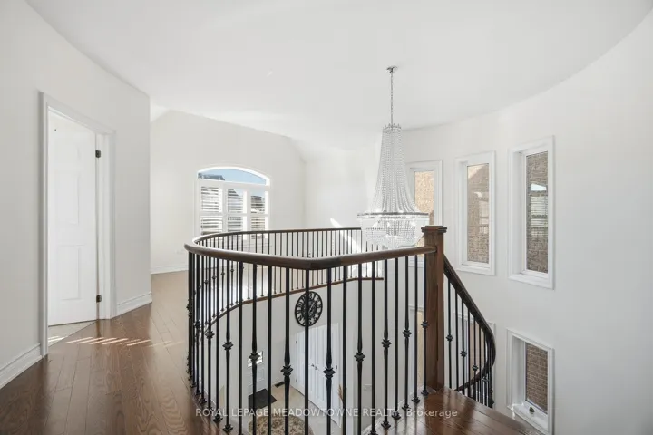 +"PublicRemarks": "Absolutely stunning executive estate home positioned on the most exclusive and finest street in Churchill Meadows, quietly nestled on a prestigious cul-de-sac offering unmatched privacy and distinction. This meticulously maintained residence showcases a rare three-car driveway and two-car garage equipped with an EV charger, soaring ten-foot ceilings on the main level, nine-foot ceilings on the second level, and a professionally finished walk-out basement designed for elevated living. The home features four full bathrooms plus a powder room, smooth ceilings throughout, and convenient upper-level laundry with brand new machines. The chef's kitchen is crafted for luxury entertaining, featuring smart Samsung appliances under warranty, an elegant breakfast area with walk-out to a two-tier deck, and a gas hookup for seamless indoor-outdoor hosting. The grand primary retreat boasts a fireplace, two expansive walk-in closets, and a spa-inspired five-piece ensuite designed for ultimate relaxation. Secondary bedrooms are equally impressive, offering a Jack and Jill five-piece bath and a private ensuite suite complete with walk-in closet and three-piece bathroom. California shutters throughout provide timeless elegance and refined privacy. The lower level unveils a newly built apartment-style living space finished to an exceptional standard, highlighted by a massive home theatre, two executive offices, and direct walk-out access to the landscaped yard - ideal for extended family, guests, or sophisticated entertaining. Furniture available for purchase. A rare opportunity to acquire a grand, impeccably appointed luxury residence on the most coveted street in one of Mississauga's most sought-after communities."