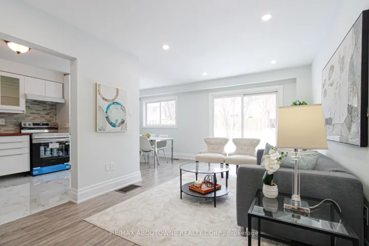 +"PublicRemarks": "READY FOR YOU TO MOVE IN! Completely Renovated from Top to Bottom! From the brand new garage door and front entry door to the stylish new flooring, this home has been thoughtfully upgraded throughout. Features include new laminate floors, new tiles, new baseboards, a new kitchen with modern backsplash and brand new appliances including integrated b/in dishwasher, plus freshly painted walls across the entire home.Enjoy the open-concept main floor layout - perfect for family living and entertaining. The spacious primary bedroom easily accommodates a king-size bed and still offers room for a home office or sitting area. The two additional bedrooms comfortably fit queen-size beds.The fully finished, renovated basement offers flexible space ready for your personal touch - ideal for a kids' playroom, media room, gym, or man cave.Parking is easy with a driveway that fits 2 cars.Unbeatable Oakville location: walk to medical offices, shopping, and restaurants, and just minutes to QEW, 403, Sheridan College, and downtown Oakville."