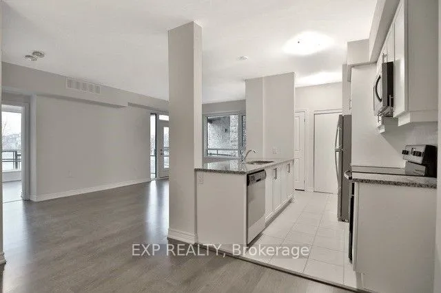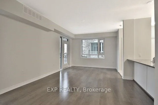 +"PublicRemarks": "Bright, spacious 1-year-old ground-floor unit with 2 bedrooms, 2 full baths, and 2 parking spots (garage + driveway). Features 10-ft ceilings, dark laminate floors, and direct garage access.Modern kitchen with large island, granite counters, backsplash, and stainless steel appliances. Primary bedroom includes ensuite. Large windows provide great natural light. Includes a huge locker. Located in a great school district, steps to transit, with quick highway access."