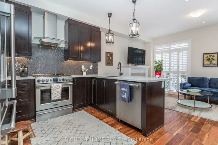 +"PublicRemarks": "Welcome to 102 Upper Canada Court, located in the Enclaves of Upper Canada, one of Georgetown's most sought-after neighborhoods.This rare 4-bedroom, 3.5-bathroom end-unit semi-link home offers space, beautiful upgrades, and pride of ownership from the original owners.The professionally finished exposed aggregate concrete provides parking for an additional vehicle and leads you to a beautifully landscaped front and back yard, complete with a large patio, deck, gazebo, and perimeter plantings.Inside, this carpet-free home features hand-scraped walnut floors on both the ground and second levels, along with California shutters and an abundance of natural light throughout. The upgraded kitchen boasts quartz countertops, stainless steel Frigidaire appliances, and a breakfast bar for four, opening to the bright living room with a cozy gas fireplace and walkout to the deck. A breakfast area, spacious separate dining room, and convenient powder room complete the ground floor. Upstairs, retreat to your large primary bedroom with two closets and a 4-piece ensuite. Three additional well-sized bedrooms with closets and a second 3-piece bath complete the upper level which provide plenty of room for the whole family - a rare find in Georgetown townhomes. The finished basement expands your living space with a large family room, 3-piece bath, separate laundry room, three storage closets, and a cold cellar. Perfectly located close to schools, parks, and shopping. Walking distance to trails! Book your showing - this home has everything you need. Your next chapter starts here."