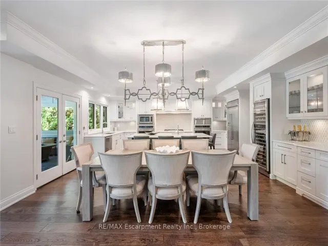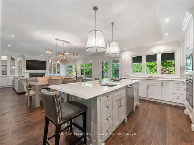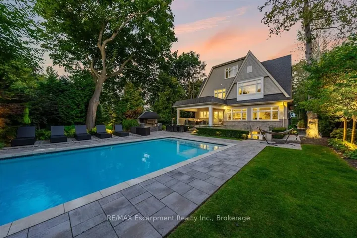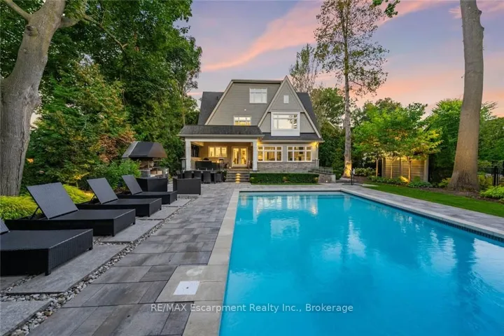 +"PublicRemarks": "Set on prestigious Lakeshore Road in Roseland one of Burlington's most sought-after neighbourhoods this custom-built residence offers over6,000 square feet of finely finished living space on a rare217-ft-deep property. Located within the Tuck/ Nelson school district, just steps from the lake, it combines an exceptional address with remarkable scale and design. The main level is anchored by an elegant great room with a gas fireplace, custom built-ins with glass accents & expansive windows overlooking the rear gardens. A private home office, formal dining area with a wet bar, & a chef's kitchen designed for both daily living & entertaining set the tone for the home. The kitchen features a large quartz island with seating, dual dishwashers, dual Frigidaire Professional wall ovens, a gas range with decorative hood, warming drawer, microwave, & a Kitchen Aid S/S refrigerator with ice & water. Custom soft-close cabinetry, a walk-in pantry, & a walkout to the covered patio complete this well appointed space. A separate main floor laundry room with custom cabinetry, quartz counters & washer/ dryer adds convenience. Upstairs, four bedrooms each feature their own private ensuite baths & custom closet organizers, including a self-contained in law suite with a separate entrance featuring a living area, bedroom, and full bath, ideal for extended family or guests. The third-floor loft, currently used as a gym, offers flexibility as an additional bedroom or creative studio. The fully finished lower level extends the living space with a large recreation room with a wet bar, sitting area with gas fireplace, sixth bedroom with ensuite, music/media room,& a walk-up to the backyard. Set on a 200ft-deep lot, the property offers rare privacy & scale, with a resort-style backyard featuring a heated saltwater pool, stone patio, covered terrace, &outdoor kitchen. A three-car garage & additional parking complete this home, just minutes from downtown Burlington & the lake. Luxury Certified"