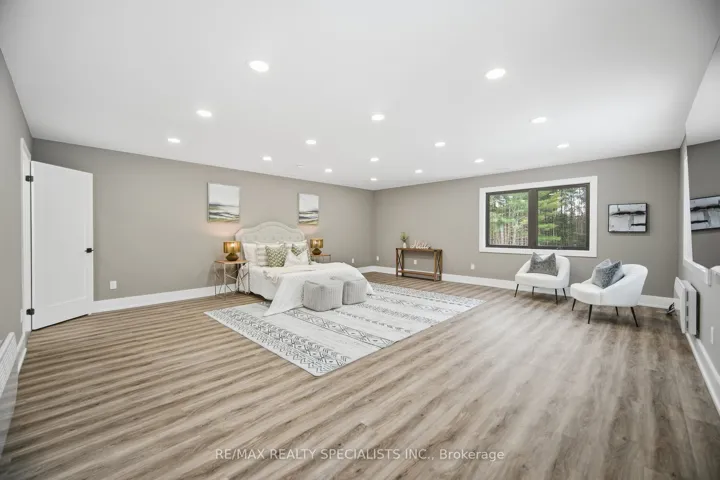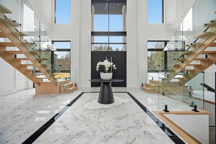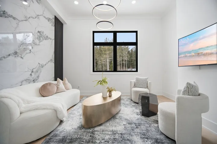 +"PublicRemarks": "Welcome to this exceptional luxury estate, gracefully set on 9.3 acres of pristine land along the coveted Gore Road. A true architectural masterpiece, this recently built residence offers 6,952 sq. ft. of above-grade living space plus an exquisite newly finished walk out basement, where every detail reflects sophistication, comfort, and timeless elegance. From soaring ceilings and bespoke finishes to the serene private backyard, this is more than a home-it's a lifestyle. The grand entrance makes a striking first impression with a dramatic double staircase that sets the tone for the refined design throughout. The main level is adorned with 7 3/4" Snow White Oak hardwood flooring an delegant 7 1/2" baseboards, creating a seamless and sophisticated aesthetic. Designed with the modern entertainer in mind, the home features two state-of-the-art kitchens equipped with premium appliances, oversized islands with built-in wireless charging stations, and a spacious walk-in pantry-perfectly balancing style and functionality. The show-stopping family room boasts a breathtaking 23-foot open-to-above ceiling, offering an extraordinary space for both grand entertaining and everyday luxury. This remarkable residence offers five generously sized bedrooms, each complete with its own spa-inspired ensuite featuring heated floors and wall-mounted toilets for ultimate comfort. Additional highlights include a private nanny suite above the garage. A rare offering where thoughtful design meets unparalleled luxury. Schedule your private tour today and experience this extraordinary estate for yourself."