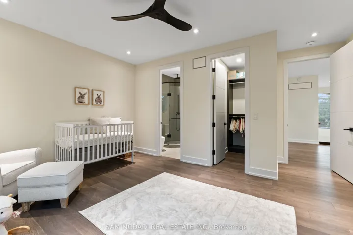 +"PublicRemarks": "Welcome to 2075 Shawanaga Trail, tucked within the prestigious Sheridan enclave. This elegant residence offers over 6,000 SF of finished living space, thoughtfully designed with 5 bedrooms and 6 bathrooms. A dramatic double-height foyer sets the tone, leading into light-filled interiors where oversized windows showcase the homes architectural elegance. Tray ceilings with recessed and cove lighting create a soft ambient glow, while a two-way gas fireplace anchors the open living and dining areas. A glass-enclosed wine display adds a sculptural statement, perfect for the discerning collector. The chef's kitchen features quartz countertops, integrated appliances, custom cabinetry and walk-in pantry. It flows seamlessly into the main gathering spaces with views of the private backyard. A covered patio invites year-round entertaining, while a main floor office offers quiet workspace. Above, the primary suite is a private retreat with dual walk-in closets and a spa-like ensuite with freestanding tub and glass shower. Three additional bedrooms feature walk-in closets and private or semi-ensuite baths. A second-floor laundry room adds convenience. The finished lower level boasts 9-foot ceilings, a full wet bar, expansive recreation room, guest suite with ensuite, and a flexible room ideal for media or fitness. Outdoors, the professionally landscaped backyard is framed by mature trees, offering privacy, tranquility, and space to customize. Additional highlights include engineered hardwood, built-in Sonos audio, newer roof and windows (2022), and ample parking. Located near Mississauga and Credit Valley Golf Clubs, University of Toronto Mississauga, and highly acclaimed schools. Just minutes to the QEW, 403, Port Credit Village, and scenic waterfront trails."