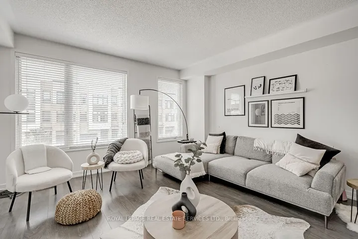 +"PublicRemarks": "Upscale townhome in Trafalgar Landing in the Uptown Core. Chic modern well-planned living space with 3 bedrooms, two 4-piece bathrooms, two 2-piece bathrooms, 9' ceilings throughout, gorgeous staircase with iron pickets, wide-plank laminate flooring, stone-look floor tiles, 3 walkouts, solid surface counters, sleek flat front cabinetry, large windows with wide-slat blinds & an inside entry to the attached garage. Ground floor family room with sliding glass doors. Conveniently located on this level is a 2-piece bathroom. Beautiful living/dining room with 2 large windows with wide-slat blinds & plenty of space for entertaining. You'll love the sleek modern kitchen with 2-colour cabinetry, quartz & solid surface counters, large island with a breakfast bar & pendant lighting overhead & upgraded stainless steel appliances including a downdraft range hood fan. Generous, bright breakfast room with a large window & a walkout to the balcony. Upstairs you'll find the laundry area, 3 bedrooms & two full bathrooms. The primary retreat features a walkout to a private balcony & 4-piece ensuite bathroom with an oversize glass enclosed shower. Walk to Squire Parkette & Postville Pond, a 5-minute walk (2-minute drive) to the Uptown Core for shopping, services & several restaurants, & easy access to highways & GO Train. No pets. No smokers."