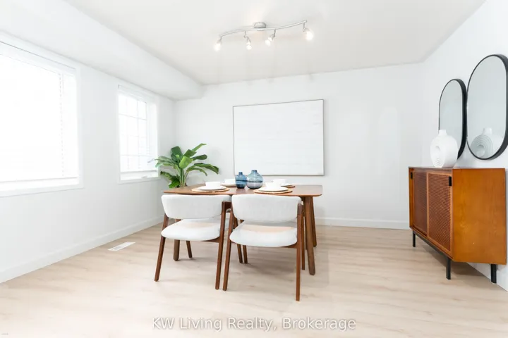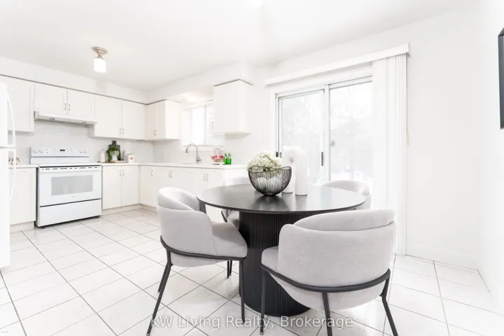 +"PublicRemarks": "Well-maintained 3-bedroom, 2-bathroom townhouse in a highly convenient Mississauga neighbourhood. Located within walking distance to the community centre, library, parks,trails, shopping, and everyday amenities, and just minutes to Square One with quick access to Highways 403, 410, and 401-ideal for commuters. The spacious kitchen features ample cabinetry and counter space, new quartz countertops, and a ceramic backsplash. The open-concept living and dining area, a bay window, and a large picture window overlooking the south-facing backyard, providing excellent natural light throughout the day. The upper level includes three generously sized bedrooms with new vinyl flooring and a full bathroom. The primary bedroom is highlighted by a bay window and double walk-in closets. The finished basement provides a generous recreation room, along with an office/den area, laundry room, and ample storage-ideal for a home office, gym, or additional living space. The main level is complete with a 2-piece powder room. Recent updates include new vinyl flooring (where laid) and new quartz countertops in the kitchen and bathrooms."