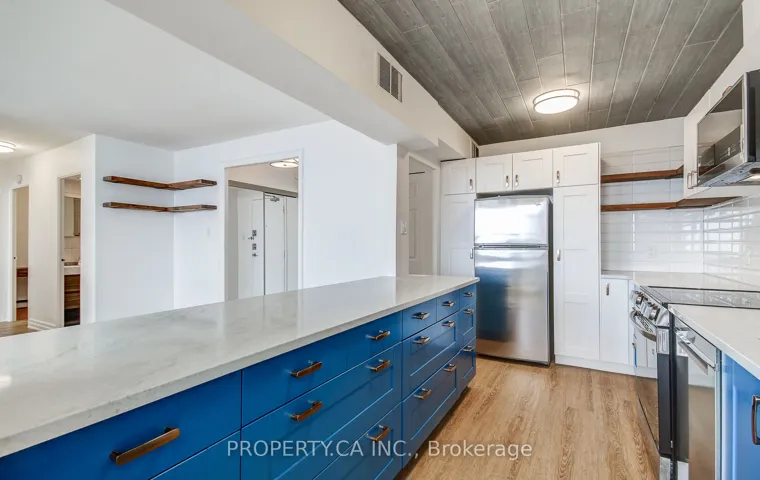 +"PublicRemarks": "Welcome to Suite 1706 at 155 Marlee Avenue, a bright and generously sized 1,156 square foot two-bedroom plus den condo with parking. The suite was fully renovated in 2023 and features a standout kitchen that blends modern design, smart functionality, and quality finishes. Bright white upper cabinets are paired with bold custom blue lowers, all accented by brushed-brass hardware for a warm, contemporary look. The layout is highly efficient, offering excellent counter space and full-height storage. Quartz countertops run across the entire kitchen and are complemented by a subway-tile backsplash for a clean, elevated finish. Premium interlocking vinyl plank flooring flows throughout the suite and offers the natural appearance of wood with added durability. The layout includes a proper dining area (large enough for an 8 seat table), a spacious west-facing living room, and a large balcony with open views over the neighbourhood. The oversized laundry room with full-sized washer and dryer is another highlight. It functions comfortably as a den or home office and provides storage options that feel more like a house than a condo. The primary bedroom has a walk-in closet giving you the kind of storage space rarely seen in most units. The in-unit electrical panel is brand new and electrical was upgraded throughout the suite. Briar Hill Towers is a well-established community with long-term owners, on-site management, and excellent value for the size of its suites. Building amenities include bike storage, storage lockers, an exercise room, a games room, and a well-used children's recreation and playroom. Residents also enjoy visitor parking, an indoor pool, a gym, a sauna, and recent updates to the parking garage and landscaping. The Briar Hill-Belgravia neighbourhood offers easy access to parks, schools, local shops, and transit, along with quick connections to the highways, Yorkdale, and the now-open Eglinton LRT."