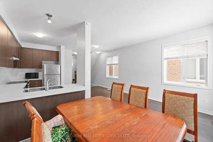 +"PublicRemarks": "Welcome to this stunning end-unit 3-bedroom, 4-bathroom condo-townhouse, offering one of the best locations in the complex! This bright and spacious home features a fully finished walkout basement that backs onto a serene ravine, offering peaceful views and added privacy. From the moment you step inside, you'll be impressed by the thoughtful layout, natural light, and quality finishes throughout.The main floor showcases an open-concept living and dining area with elegant hardwood flooring, perfect for relaxing or entertaining guests. A bay window adds charm and floods the space with light. The modern kitchen is equipped with stainless steel appliances, ample counter and cabinet space, a stylish backsplash, and a convenient breakfast bar. A second bay window in the kitchen overlooks the private ravine and opens to a deck perfect for morning coffee or evening BBQs.Upstairs, the large primary bedroom features a walk-in closet, its own bay window, and a 4-piece en-suite bath for your comfort. Two additional generously sized bedrooms and a full bathroom complete the upper level.The professionally finished basement, completed by the builder, offers a walkout to a private patio surrounded by nature ideal for a home office, recreation room, or media space. Theres also a 2-piece bathroom and abundant storage space.Enjoy the convenience of a single-car garage with direct interior access, a private driveway, and visitor parking nearby. Bay windows on all three levels enhance the character and brightness of this exceptional home. Don't miss this rare opportunity to own a beautifully maintained, move-in-ready home in a sought-after, family-friendly community. Book your private showing today!"