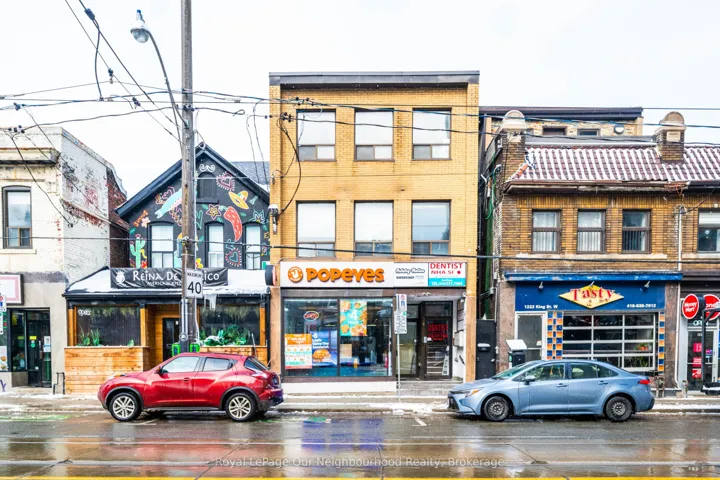 +"PublicRemarks": "Exceptional opportunity to lease or purchase a highly visible 1,324 sq. ft. commercial unit in one of Toronto's most dynamic corridors. Perfect modern newly built space perfect for 2 floors. Incredible finishes, rooms for treatment spaces or offices. Directly across the street, the unit enjoys unobstructed park views, adding to the appeal and drawing consistent foot traffic from nearby residents, visitors, and office workers. The surrounding neighborhood is vibrant and well-established, known for its mix of retail, dining, and creative businesses, making this an ideal location for entrepreneurs looking to capitalize on an energetic urban environment. Convenience is unmatched, with TTC streetcar service directly in front of the unit, offering seamless access for customers, clients, and staff commuting from across the city. The combination of transit accessibility, strong walkability, and high visibility makes this an excellent long-term investment or flagship business location."