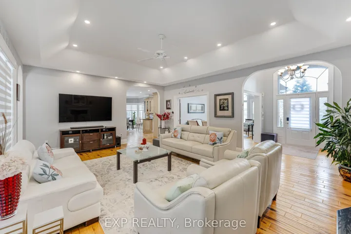 +"PublicRemarks": "This stately executive Bungaloft sits on a premium 2.77-acre rectangular lot at the end of a quiet cul-de-sac in the exclusive Palgrave community of Caledon. Boasting approximately 4,500 sq. ft. of finished living space, the home features 4 bedrooms plus a loft that can serve as a 5th bedroom, 3-4 bathrooms, and a fully finished walk-out basement. Newly renovated and filled with natural light, it offers 10-ft ceilings throughout, an open-concept custom kitchen with island, granite countertops, and stainless steel appliances. The elegant master suite includes a tray ceiling and 5-piece ensuite. Professionally landscaped grounds with natural stone, perennial gardens, irrigation system, cedar shake roof, pool-sized lot, extremely private back deck with hot tub and motorized awning, and an invisible dog fence make this home ideal for family living and entertaining. Conveniently located 25 mins to Pearson Airport and 45 mins to Toronto, with close access to conservation trails and commuter routes."