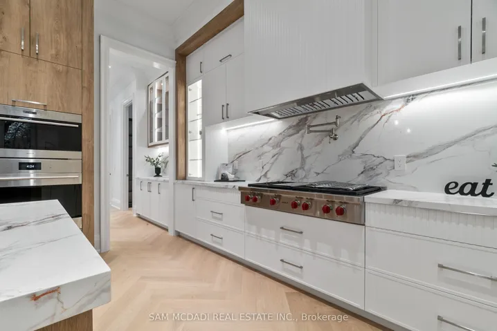 +"PublicRemarks": "Set within one of Oakville's most distinguished enclaves, 84 Pebbleridge Place is a newly built modern estate that epitomizes architectural artistry and offers over 7,000 SF of refined living space. Poised on a private lot, this residence showcases a brick and limestone exterior, full-height glass walls a curated palette of luxurious finishes for the most discerning buyer. A grand double-height foyer introduces the home w/ polished marble-style porcelain and bespoke detailing. Beyond, herringbone hardwood floors flow through expansive principal rooms to a family room defined by a sleek wood feature wall, gas fireplace, and integrated Control4 automation for effortless entertaining. The designer kitchen is both statement and function, featuring an oversized island, full-height custom cabinetry, and Calacatta-style quartz counters w/ a custom backsplash. It opens directly to a covered deck w/ a gas fireplace, perfect for al fresco dining and evenings. An elevator and striking skylit staircase lead to the upper level, where four bedrooms each feature walk-in closets, tray ceilings, and private ensuites finished to spa-like standards. The primary suite is a serene retreat w/ a boutique-style dressing room and five-piece ensuite boasting a freestanding tub, oversized glass shower, full-height stone surrounds, and heated flooring. The lower level continues the theme of luxury and versatility, offering a heated basement w/ large-format porcelain slab flooring throughout. Designed for both relaxation and entertainment, this level includes a secondary kitchen, dining area, expansive living space, fitness room w/ cushioned flooring, an acoustically designed theatre, and three additional ensuite bedrooms, all enhanced by full-size windows and a separate entrance. Additional highlights include: a rough-in sauna, built-in speakers, and recessed lighting elevate comfort and ambiance, while upper-level laundry & a tandem garage w/ epoxy flooring complete this modern masterpiece."