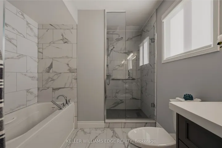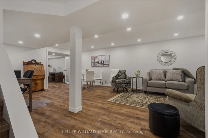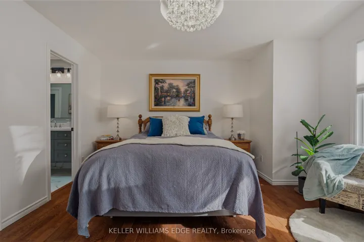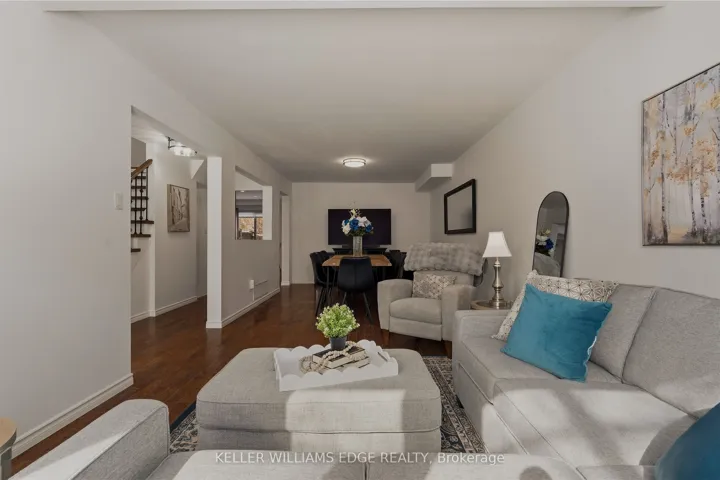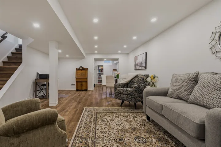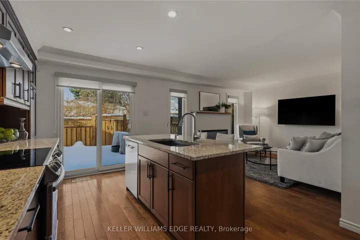 +"PublicRemarks": "Executive townhome offering over 1,800 sq. ft. of finished carpet free living space in a prime location just steps to the lake and everyday amenities. The main floor features a modern electric fireplace in the family room. With two separate sitting areas and a spacious dining room, the layout comfortably accommodates gatherings of any size. The kitchen features custom cabinetry, convection oven, appliance garage, granite countertops, striking backsplash, oversized island, pot lighting, and is open to the family room. This area is ideal for entertaining as it has a walk-out that leads to your private quiet sun deck and BBQ area, perfect for relaxing or entertaining. The laundry room is conveniently located on the main level. The second level offers two generous primary bedrooms, each with walk-in closets and custom closet organizers for maximum storage and everyday convenience. The recently renovated spa-like ensuite bathrooms include quartz countertops. The fully finished lower level features vinyl flooring and provides exceptional versatility with an oversized recreation room, third bedroom, 2-piece bath and an abundance of storage in the utility space."