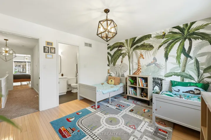 +"PublicRemarks": "Welcome to sought-after Headon Forest, where convenience, community, and comfort come together. This beautifully updated 2-bedroom (both with ensuites) townhome offers a bright, functional layout and updated finishes throughout, making it truly move-in ready. The primary bedroom and ensuite were updated in 2022 and showcase a spa-inspired 4-piece bath complete with porcelain tile, a soaker tub, and a separate glass shower. The second bedroom ensuite was refreshed in 2025 with updated flooring and fresh paint. The main level is designed for easy living and entertaining, with an open-concept kitchen and living area filled with natural light. The kitchen was also updated in 2022 and features quartz countertops, updated cabinetry, and a seamless flow into the dining and living space, where a cozy gas fireplace and walkout to a private deck create the perfect setting for relaxing or hosting. Hardwood flooring (2021) runs throughout the main and upper levels, adding warmth and continuity. The finished lower level provides flexible living space, ideal as a family room, home office, gym, or guest retreat. Additional updates include the range (2021), washer (2021), attic insulation top-up (2024), and air conditioning (2025), offering peace of mind for years to come. Set in a family-friendly neighbourhood within walking distance to schools and a forested park, and just minutes to shopping, amenities, and highway access, this well-maintained home offers the perfect blend of lifestyle and location. A sound choice for buyers prioritizing security, resilience, and long-term suitability and stability."