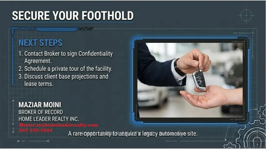 +"PublicRemarks": "Prime Keelesdale Auto Shop - 50+ Yr Legacy! Lease & Get Business FREE at this OMVIC-approved, zoned for bodyshop mechanical/repair/body shop. Over 50 years serving auto/truck repairs - instant reputation & clientele, no buy-in needed! Highlights: - 12,367 sq ft lot (fenced) - 7,200 sq ft bldg. (14' ceilings) - 3 drive-in gates-500 sq ft office mezzanine - 22 parking spots (15 out/7 in) - Turnkey for techs - $883K MPAC value. Act fast!"